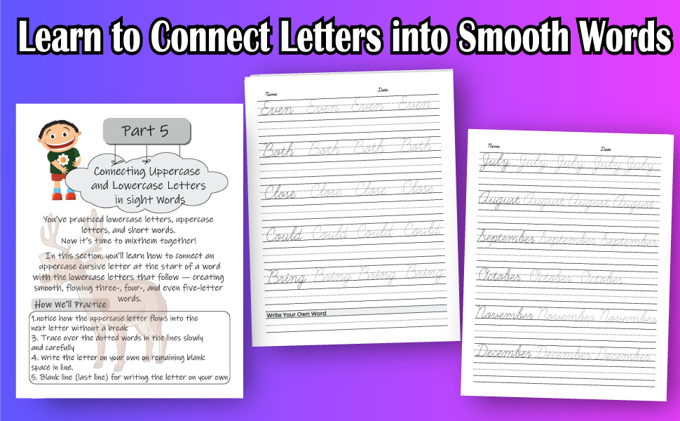 - Months name: Writing months name with Connecting Uppercase and Lowercase Letters