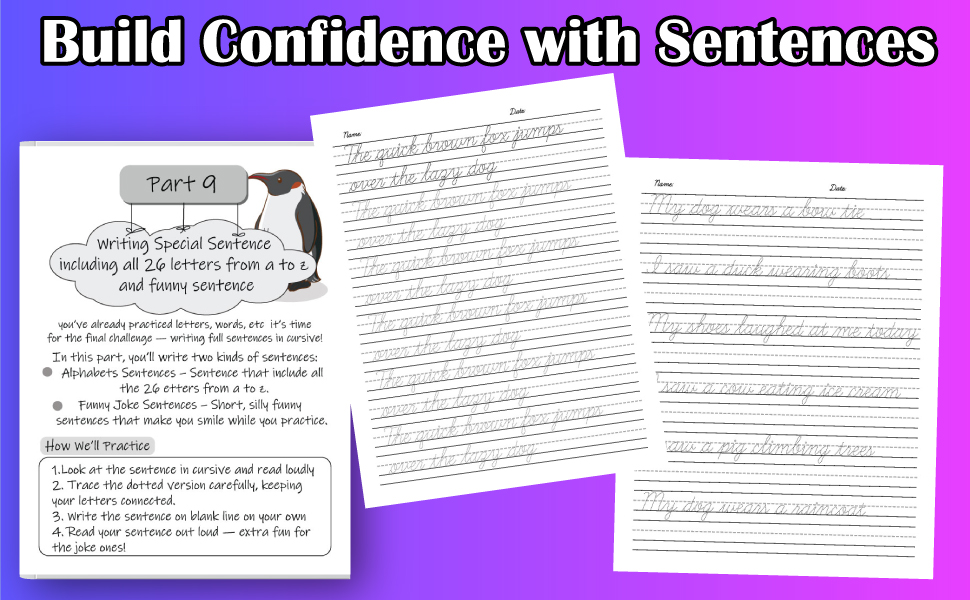 - Grow Confidence: build confidence as you write neatly and enjoy Cursive learning as Fun.